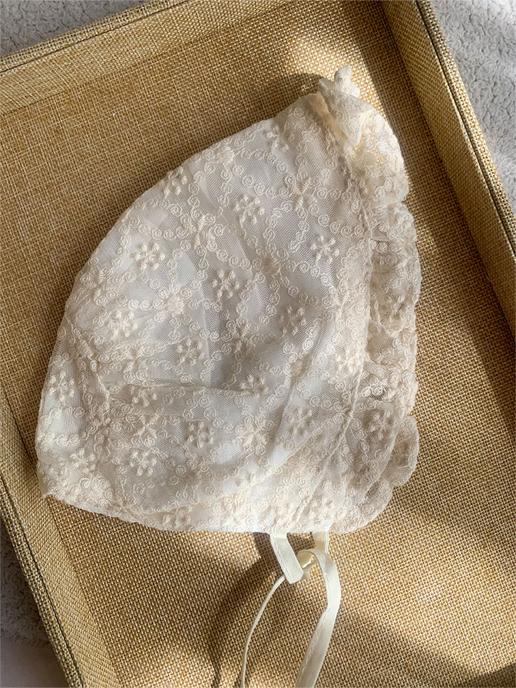 Capota Blonda Encaje Con Cordones Ajustables